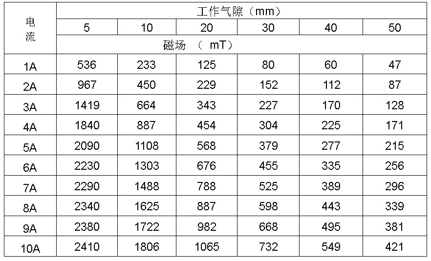 磁場強(qiáng)度 :工作氣隙20mm時,H≥0.7T