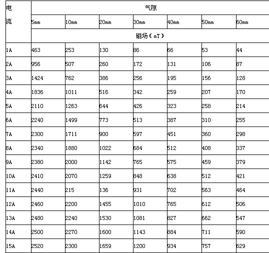 3、磁場(chǎng)參數(shù)表(供參考)